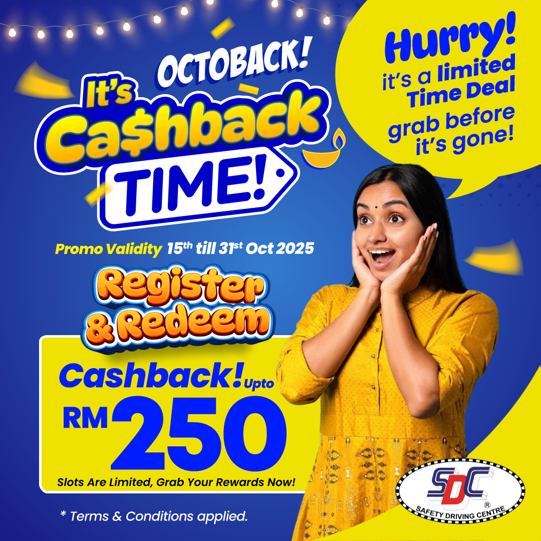 • Cashback claims are valid only after 1 month from the date you pass your JPJ test.
